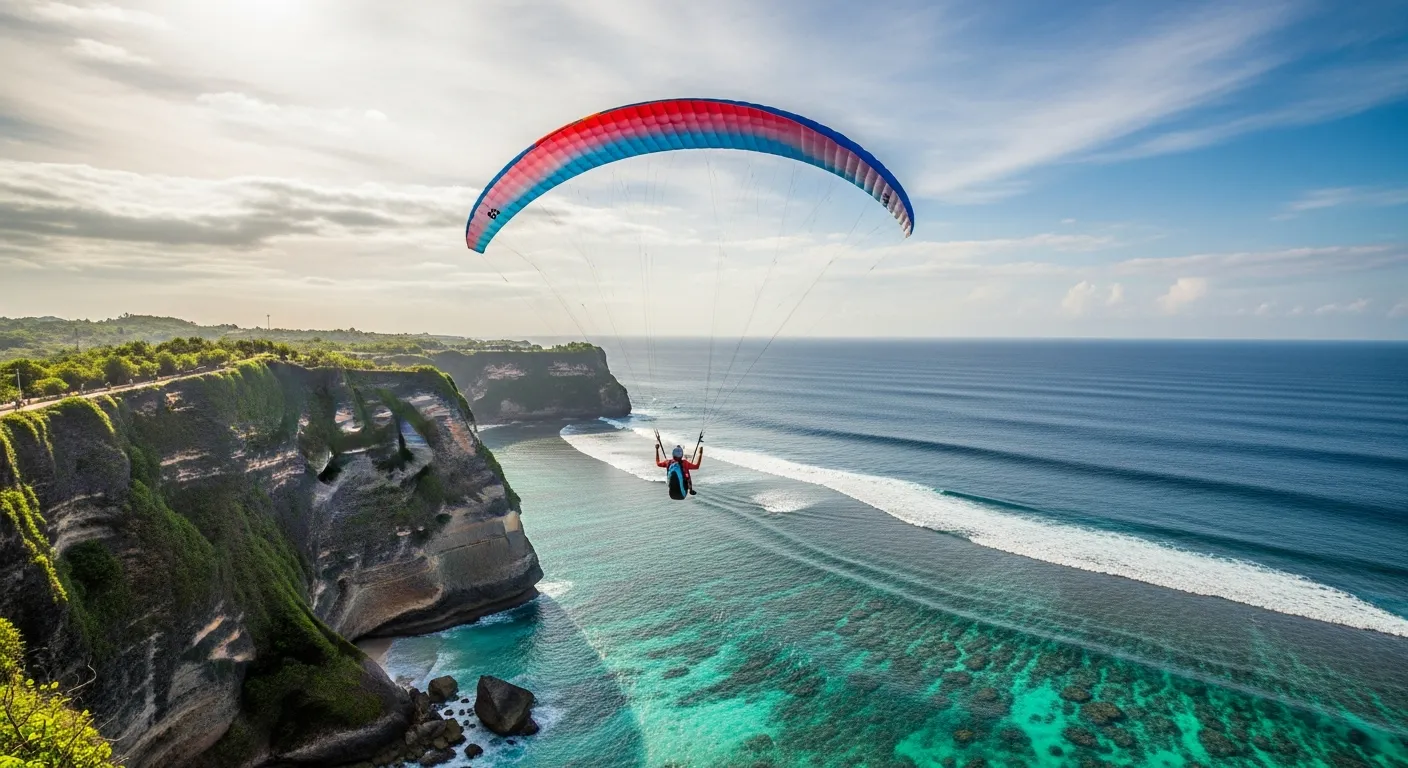 Nusa Dua is known for its calm beaches and luxury resorts, but the southern cliffs provide some of the best paragliding conditions in Bali.